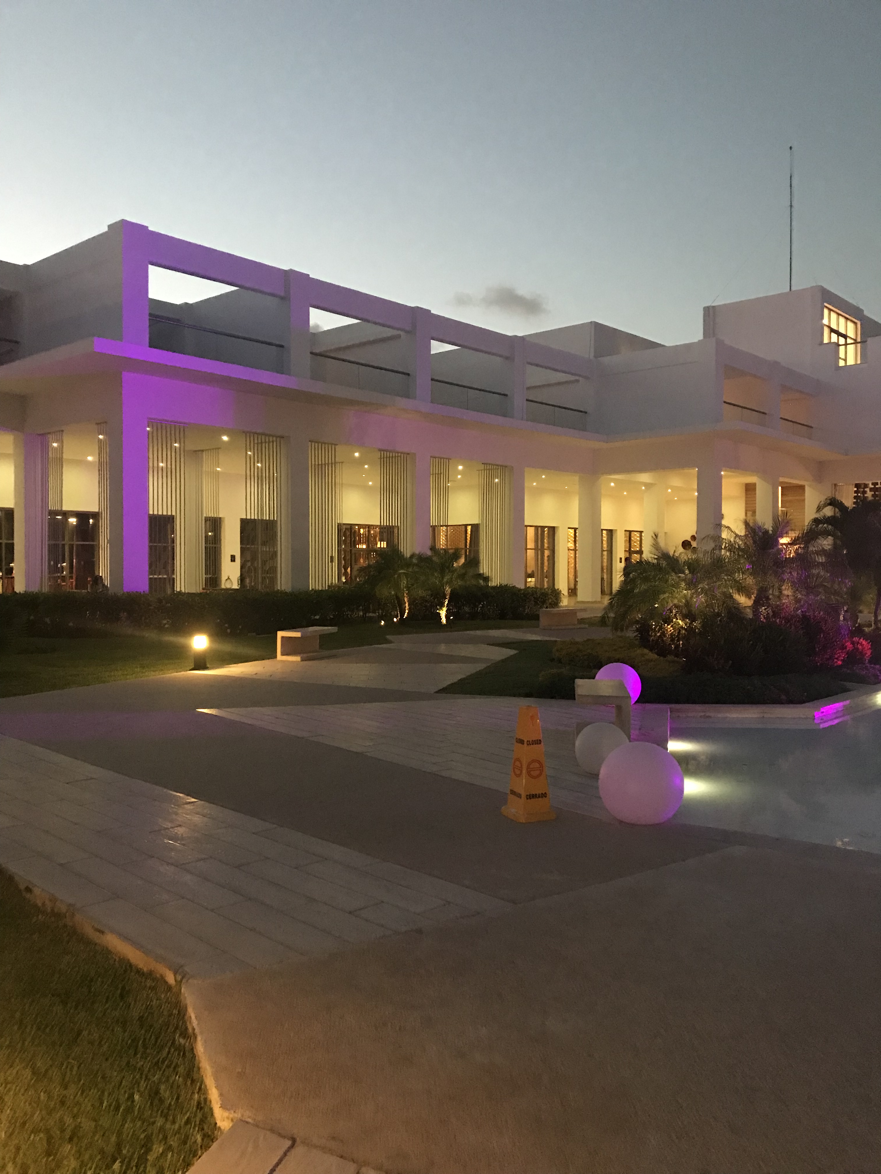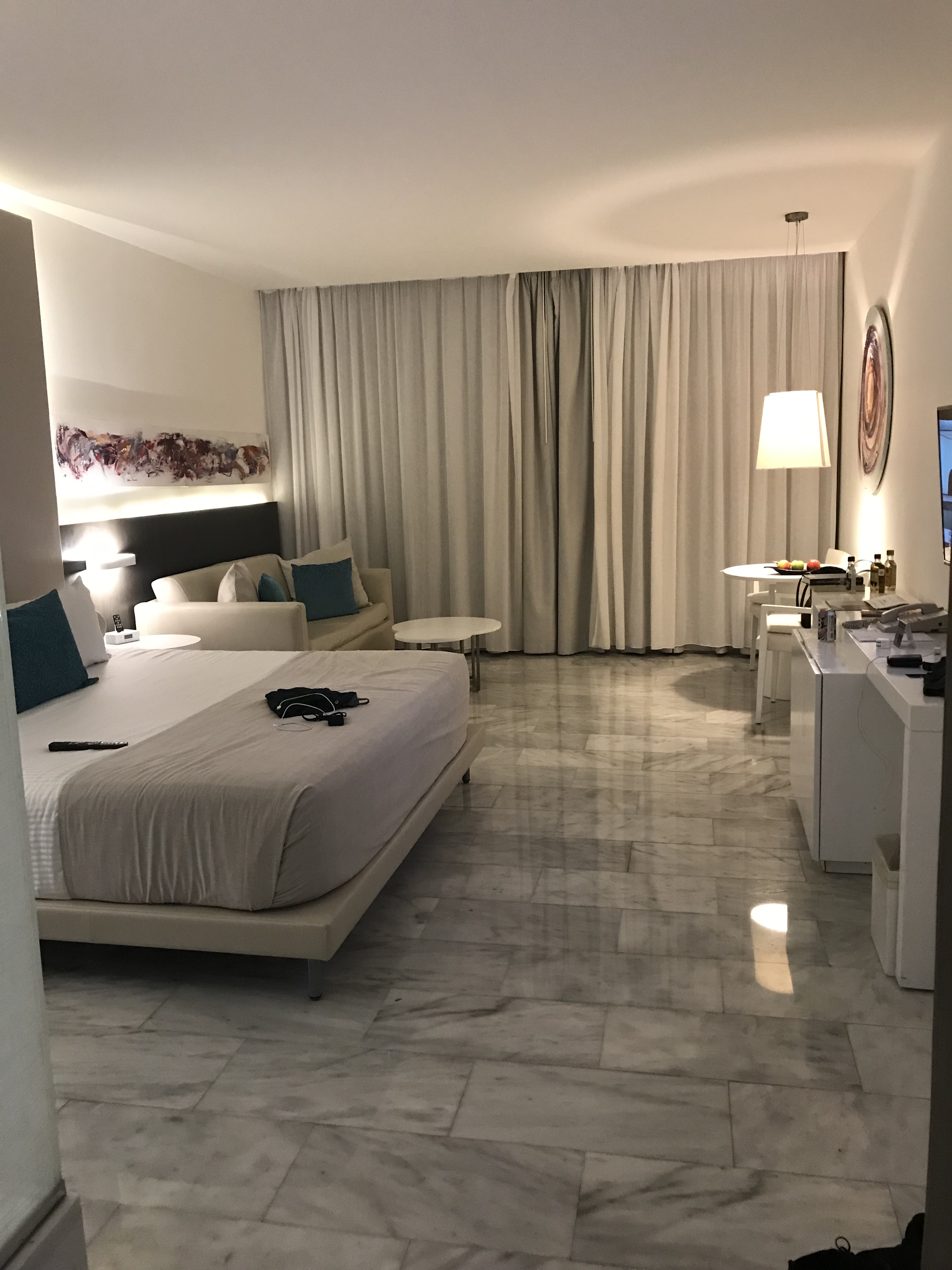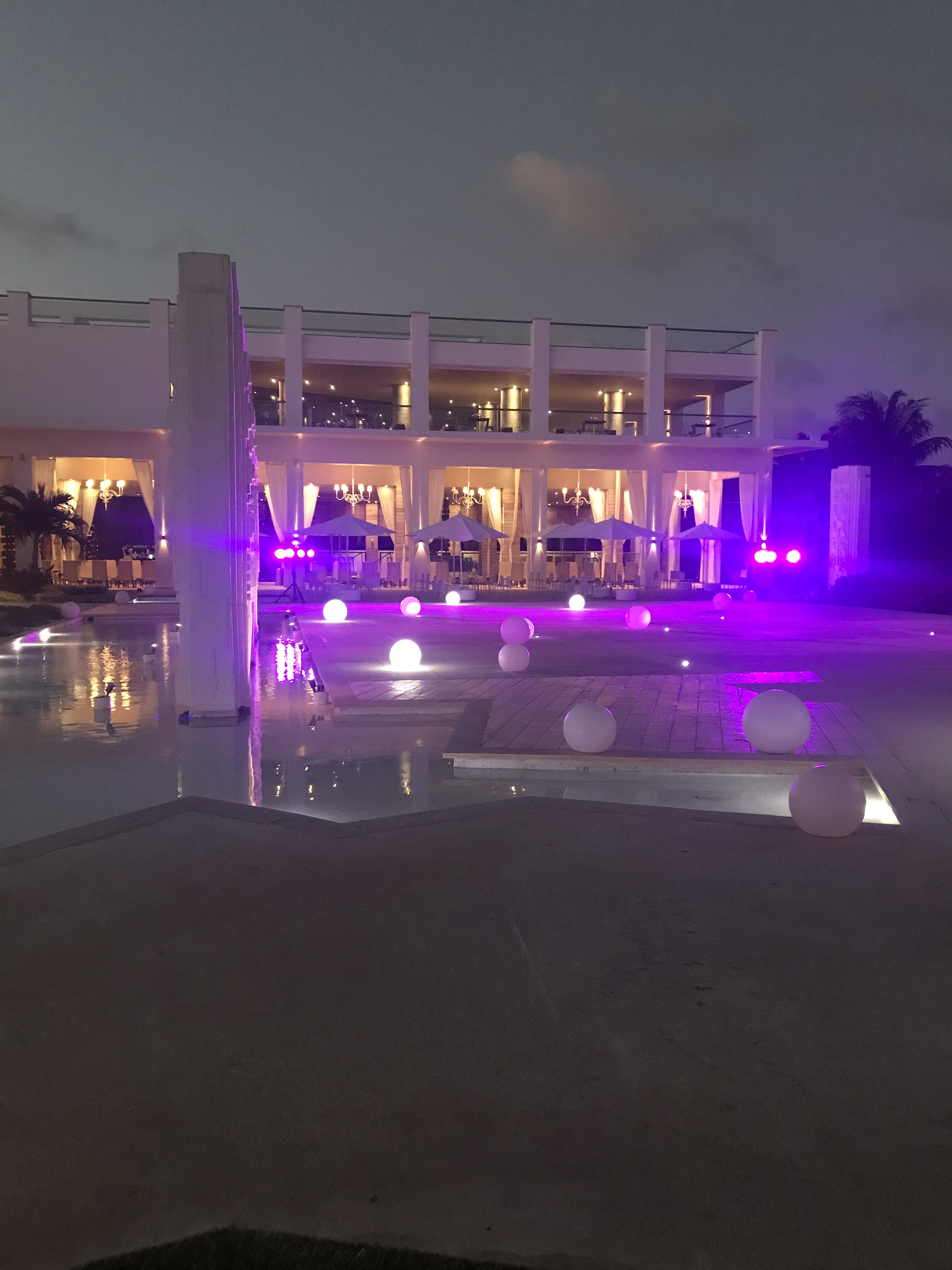 We found the BD Travel employee outside the terminal of the Cancun airport and were immediately shown to our shuttle. We were lucky as it was getting ready to leave so we didn’t have a wait. We visited with the friendly people traveling to another hotel on the shuttle during our 30 minute drive. When we pulled in to the Platinum Yucatan Princess Resort we were very impressed. Not having been to an all inclusive resort before we really didn’t know what to expect. Even though it was at night it was beautiful! The travertine floors and perfectly manicured grounds were stunning. The customer service was above par throughout our stay. Our room had marble tiled floors, a huge shower with two rainhead shower heads, a seperate soaking tub, king bed, and sitting area. The whole wall at the end is glass and has a sliding glass door that goes out to our own sitting area and direct access to the pool. Stunning!